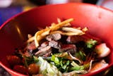 Spiced chicken, cheese, salsa ranch, tomato, lettuce, scallions, and fried tortilla strips.