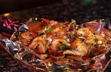 Charcoal seasoned lamb lollipops served with greenz & rice.